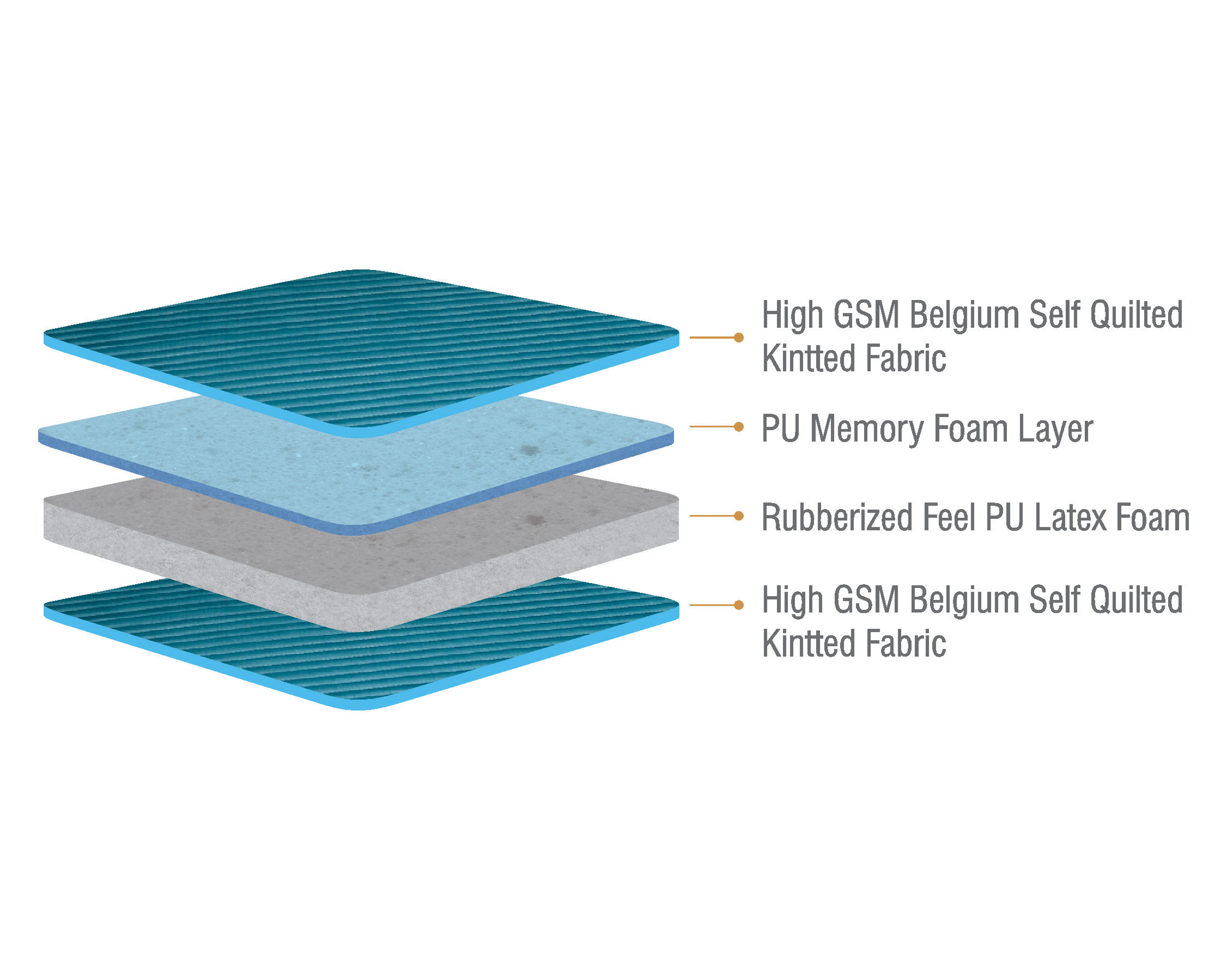 The Golden Nappy Mattress is crafted to provide restorative comfort through every layer. At its core lies a resilient PU latex foam that offers firm, orthopedic support. This is topped with a plush memory foam layer that adapts to your body, relieving pressure points and enhancing sleep quality. Wrapped in a rich, self-quilted 400 GSM fabric, it brings a breathable, cozy finish to your bedtime experience.